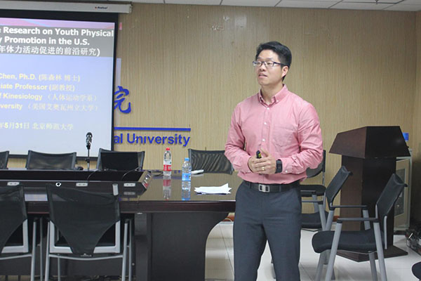 2017年5月31日,体育与运动学院在邱季端体育馆召开了“美国儿童青少年体力活动促进的前沿研究”讲座。美国艾奥瓦州立大学人体运动学系副教授、终身教授陈森林为主讲人,主持人为我院孙璞老师。体育与运动学院分党委副书记林小群老师、我院部分老师和学生参加了讲座。