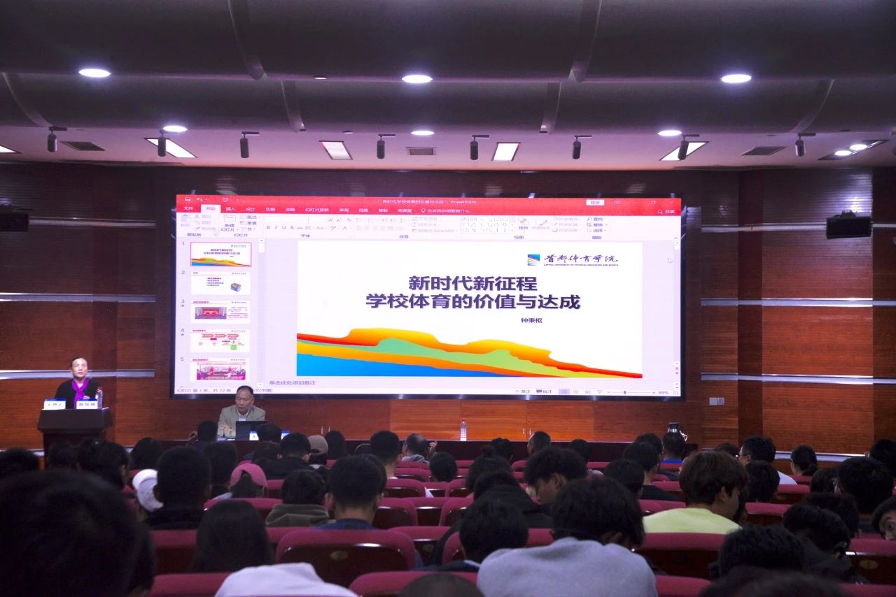 为增强体院师生对于新时代中国特色社会主义思想的深入认识,理解新时代新征程加快建设教育强国、体育强国、人才强国的重要性和紧迫性,明确新时代新征程学校体育的价值功能,提升作为未来担当民族复兴时代新人的责任感和使命感,体育与运动学院于2023年10月25日晚特邀国内著名体育专家、首都体育学院原校长——钟秉枢教授为我院师生作了题为《新时代新征程学校体育的价值与达成》的专题讲座。我院约300名师生聆听本次讲座。